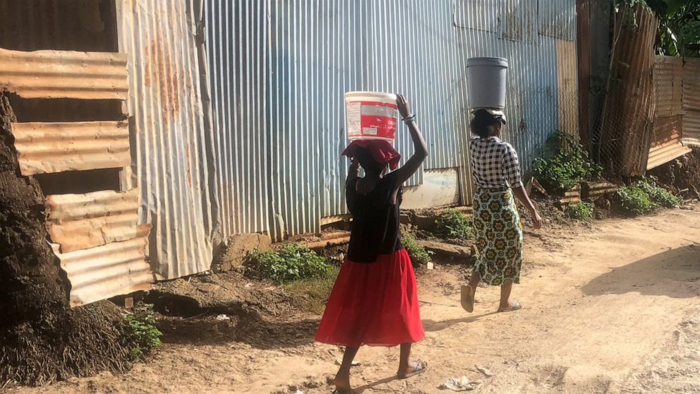While ocean waves lap empty beaches and police patrol the quiet streets of Mamoudzou’s business district, many people in Soilihi’s Bandrajou neighborhood seem unaware of lockdown rules or social distancing measures. Clusters of children play barefoot on the dusty ground, girls carry buckets on their heads to fetch water from a collective pump, an older woman at an informal street stall braids a younger woman’s hair. Almost no one wears a mask.