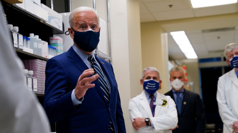 Biden toured the Viral Pathogenesis Laboratory at the sprawling National Institutes of Health complex just outside Washington that created the COVID-19 vaccine now manufactured by Moderna and being rolled out in the U.S. and other countries. He was also set to address the agency’s team of researchers and scientists, who have investigated treatments for COVID-19 and other dangerous diseases.