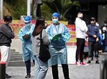 Aucklanders could be set for a new COVID-19 lockdown after recording three new cases of community transmission for the first time in 21 days. Pictured: : Nurses speak to people waiting in line outside a pop up Covid-19 testing station in Freyberg Place in November