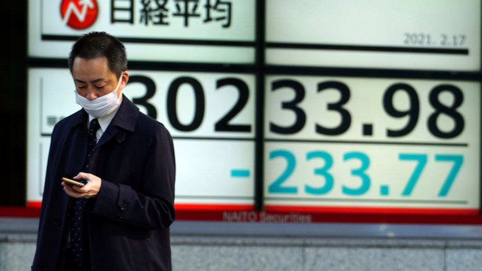 Japan’s benchmark Nikkei 225 dipped 0.6% to finish at 30,292.19, even as the vaccination drive against COVID-19 began, starting with health care workers. South Korea’s Kospi dropped 0.9% to 3,133.73. Australia’s S&P/ASX 200 slipped 0.5% to 6,885.20. Hong Kong’s Hang Seng gained 1.1% to 31,084.94. Trading was closed in Shanghai for the Lunar New Year holiday.