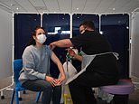 Vaccine age bands are set to be widened, with no priority for key workers, meaning that over-40s could get a first does of a Covid jab by the end of March. Pictured: A vaccinator administers an injection of AstraZeneca/Oxford Covid-19 vaccine to a patient at the vaccination centre set up at Chester Racecourse, in Chester, England, on February 15