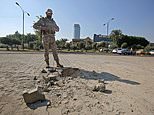 The Iraqi military said an ‘outlaw group’ fired the eight rockets. Most of the missiles hit a residential complex and a security checkpoint inside the zone, damaging buildings and cars and wounding one Iraqi soldier, a military statement said.