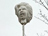 Art teacher Mark Roberts, 34, used the cover of darkness to hoist up his carved plaster version of the former Prime Minister in Grantham, Lincolnshire, at 4am on Sunday