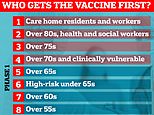 Ministers today confirmed they will follow the ‘age-based rollout’ recommended by the Joint Committee on Vaccination and Immunisation (JCVI). It means they will move a decade down at a time, rather than offering people jabs based on their job, ethnicity or whether they’re obese.