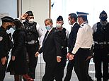 A Paris court on Monday found French former President Nicolas Sarkozy (pictured, arriving at court this morning) guilty of corruption and influence peddling and sentenced him to one year in prison and a two-year suspended sentence