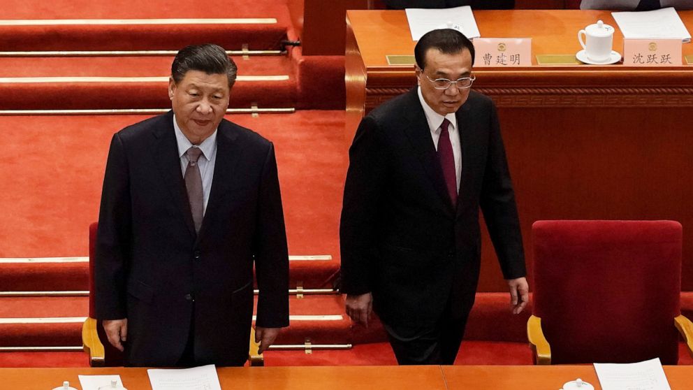 This year’s legislative meeting is being held mostly by video links to keep Chinese leaders, delegates and reporters separate as an anti-virus measure.