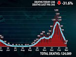 Almost 125,000 people in Britain have been killed by Covid so far in the pandemic, but deaths are now down to a four-month low at 255 per day from a peak of more than 1,200 per day at the end of January.