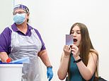 Student Leah Anderson (right) takes a Coronavirus lateral flow tests at Outwood Academy Adwick in Doncaster, ahead of schools and colleges fully reopening on Monday
