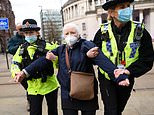 A 65-year-old woman was also arrested at the protest in Manchester city centre at noon on Sunday after she refused to leave the scene or provide details when asked.