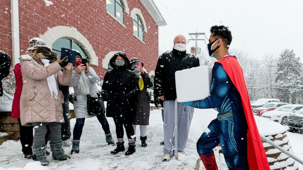 “You don’t want to get excited and get zero,” Amin says. But when the vaccine does arrive, Amin says he has to be quick on his feet, securing a location for a clinic. But despite the stress of getting a clinic together, Amin manages to bring a little levity to vaccine distribution — he’ll arrive dressed in a superhero costume, complete with red cape.