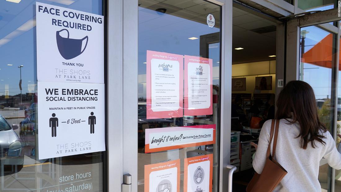 A customer enters a store with a face mask required sign displayed on March 2, 2021, in Dallas
