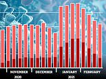 ONS death figures lag behind the Department of Health daily tallies, which began falling at the end of January. Statisticians analyse death certificates to identify exactly how many Covid was to blame for. There is a delay of about three weeks between someone getting infected with the virus and succumbing to the disease, meaning it takes time for a dip in cases to show up in death figures.