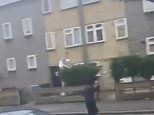 A woman and a man on the other side of the road are filming the disturbing and bizarre attack, which reportedly happened in London..