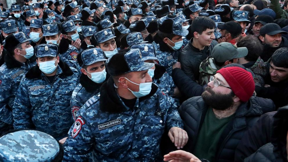 Pashinyan has faced opposition demands to resign since Nov. 10 when a Russia-brokered peace deal ended 44 days of intense fighting in Nagorno-Karabakh that killed more than 6,000 people. The agreement saw Azerbaijan reclaim control over large parts of Nagorno-Karabakh and surrounding areas that had been held by Armenian forces for more than a quarter-century.