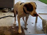 Samantha said: ‘Boomer is one of thousands of stray dogs. Because of his size and breed he would have had a hard time finding a foster home.