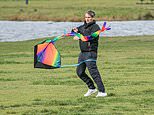 The strong winds were out in force in Wimbledon, London, this morning as one mans attempts to fly a kite were hampered by the gusts and a runner was battered by the wind