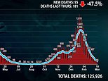 Britain’s daily coronavirus deaths have almost halved in a week, official figures revealed today as yet more data showed cases are still falling across England.