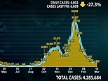 Britain’s daily Covid cases drop by a quarter in a week to 4,802 while deaths fall by 42% to 101 – but SAGE ‘fears third wave battering Europe could spread to the UK’ and England’s R rate rises for first time since December to 0.9