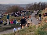 Moment more than 100 revellers gather on hill to watch the sunset in breach of Covid rules as police warn outdoor party organiser faces £10,000 fine