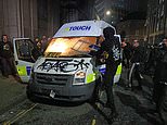 At least 20 officers were injured as a ‘mob of animals’ swarmed through the city, setting police vehicles on fire, vandalising NHS workers’ cars, hurling fireworks and smashing the windows of a police station in the violent skirmishes.