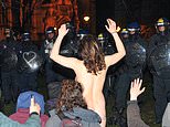 In shocking images from last night, one protester was seen facing a row of police completely naked with her arms raised to the sky