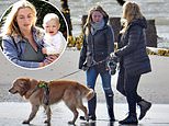 - The mother-and-daughter duo looked care-free as they enjoyed a scenic stroll on the beach in Hampshire with their pet Golden Retriever