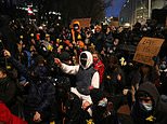 Hundreds of demonstrators stream past police vans in Bristol city centre on Friday evening during a ‘kill the bill’ demo. Today, National Police Chiefs’ Council chairman Martin Hewitt warned that large gatherings remained illegal under the Covid lockdown rules and suggested there were extremist agitators seeking to ‘hijack’ peaceful protests.