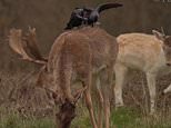Short back and sides, Sir? Moment gang of cheeky jackdaws steal clumps of hair from deer in London park to build their nests