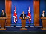Brilliant blue: Chris Whitty, left, the Prime Minister and Sir Patrick Vallance on Monday