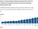 A major Office for National Statistics testing survey today found 54.7 per cent of people in England had the virus-fighting proteins in the week ending March 14, up from 50.8 per cent the week prior.