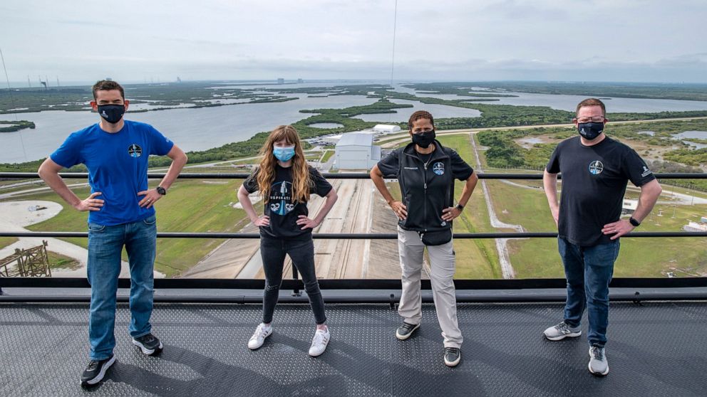 Isaacman also revealed some details about his Inspiration4 mission, as the four gathered Tuesday at NASA’s Kennedy Space Center. He’s head of Shift4 Payments, a credit card-processing company in Allentown, Pennsylvania, and is paying for what would be SpaceX’s first private flight while raising money for St. Jude Children’s Research Hospital in Memphis, Tennessee.