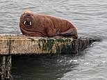 The walrus nicknamed Wally has been sunbathing on the lifeboat slipway as it attracted crowds of day-trippers.