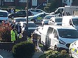 Picutred: Armed officers outside a home in Rowley Regis, West Midlands, where a woman in her 80s was attacked and killed by two escaped dogs. A 43-year-old man has been arrested