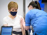 Scots were enjoying greater freedoms today after Nicola Sturgeon (pictured getting her jab yesterday) accelerated the country’s roadmap thanks to a steep drop in coronavirus cases