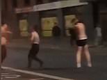In the shocking clip, a large group of yobs can be seen brawling with each other on a residential street.