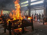 Bodies of Covid victims are burned in funeral pyres at a cremation ground in Mumbai on Friday