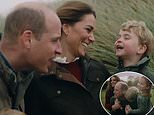 In the short video, Kate Middleton lovingly rests her hands on Prince William’s leg as the pair exchange smiles in the countryside (pictured)