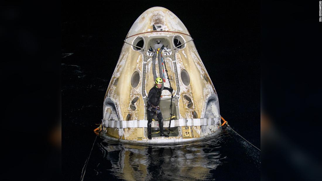A brigade of recovery ships were waiting to haul the Crew Dragon out of the ocean, moving quickly because the bobbing waves can cause severe seasickness for the astronauts. When asked what meal he was looking forward to upon his return home, Hopkins acknowledged during a press conference Monday that he likely won’t be feeling up to a gourmet meal.
