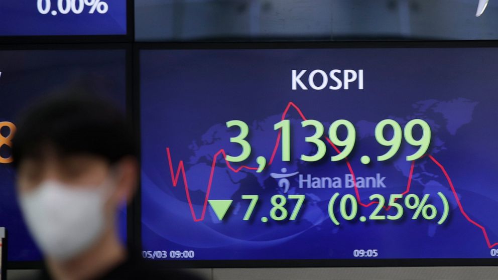 Hong Kong’s Hang Seng lost 1.3% to 28,357.54 and the Kospi in South Korea slipped 0.7% to 3,127.20. Australia’s S&P/ASX 200 edged less than 0.1% higher to 7,028.80.