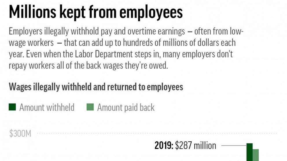 Companies that hire child care workers, gas station clerks, restaurant servers and security guards are among the businesses most likely to get caught cheating their employees, according to a Center for Public Integrity analysis of minimum wage and overtime violations from the U.S. Department of Labor. In 2019 alone, the agency cited about 8,500 employers for taking about $287 million from workers.