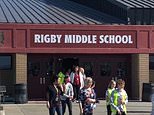 At least two students and one adult custodian have been injured in a shooting at an Idaho middle school, as a male pupil has been taken into custody. Pictured students and teachers leave the scene at Rigby middle School