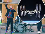 Starry-eyed: The band delivered an electrifying performance of their new song, Higher Power, and beamed the recording to the aerospace engineer, 43, onboard the International Space Station (pictured)