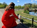 In the images, which showed the Duchess walking through the park from behind, Kate opted to wear a vibrant red coat for the occasion.