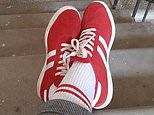 A woman has been fined £650 for wearing red and white socks because they matched the colours of the Belarusian opposition nationalist movement’s flag. Pictured: Red shoes on socks, similar to those being worn by Ms Sedushkina when she was arrested [file photo]