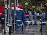 Forensics officers gather evidence at the crime scene after a man in his 30s was shot dead