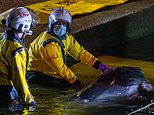 Last night, videos showed it being hosed down by a PLA staffer, while a vet performed a check-up at the river’s edge, before the Royal National Lifeboat Institute (RNLI) arrived at the scene to the cheers of onlookers around 9pm.