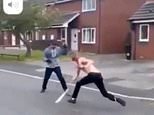 Horrific moment two bloodied men attack each other with machetes in front of shocked families on a residential street in Lancashire