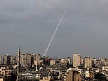 At least three exhaust trails were seen in the skies over Gaza City as explosions were heard, though was not immediately clear whether the rockets hit anything or were shot down