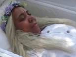 Alonzo arrived at the funeral in a hearse, dressed head to toe in white and lay in a white coffin that she had rented for the day.
