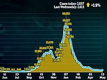 Test and Trace data showed the number of Covid cases transferred to the system had fallen by nine per cent compared to last week at 14,300. But this was a much smaller drop than in previous weeks